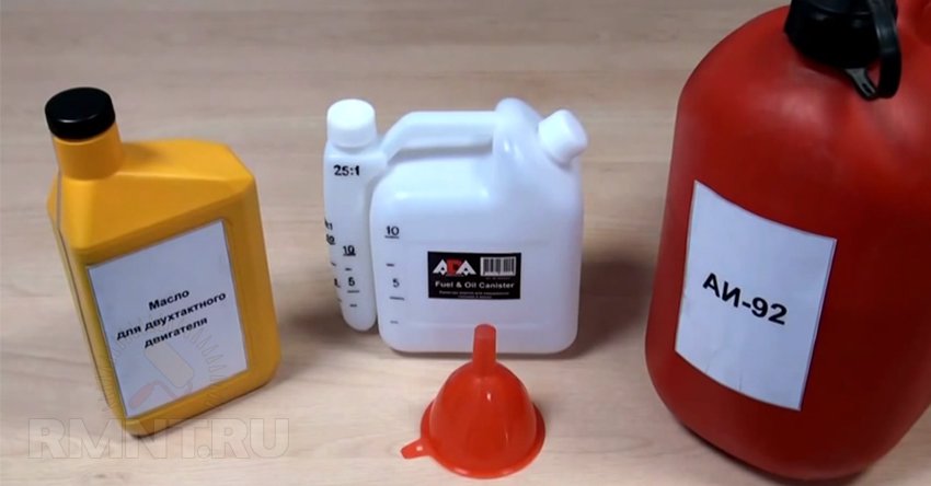 Нарушение дозировки масла в бензине ведет к падению мощности, активному засорению цилиндра, а после этого — к выходу из строя поршневой. Первые признаки неправильной заправки — повышенная дымность выхлопа или сухой, трескучий звук при работе мотора. Бензопилу заправляют бензином А-92 с добавлением рекомендованного масла стандарта 2Т (имеет синий цвет) в соотношении 50:1.