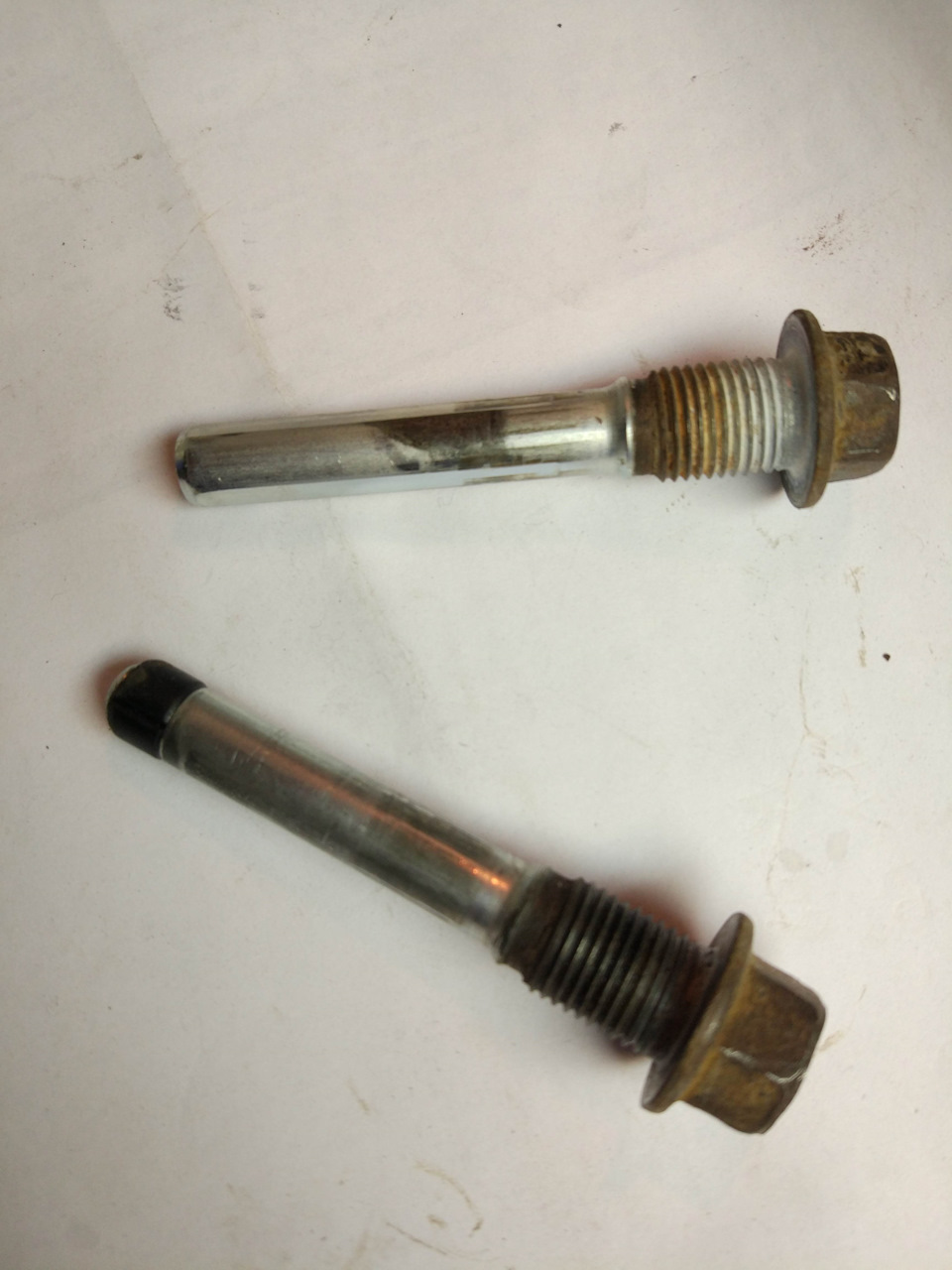 Направляющие, кстати, стояли правильно. В отличие от задних направляющих, спереди направляющая с резиновой втулкой (Lock pin) — снизу, чисто железная с проточками (Guide pin) — сверху.