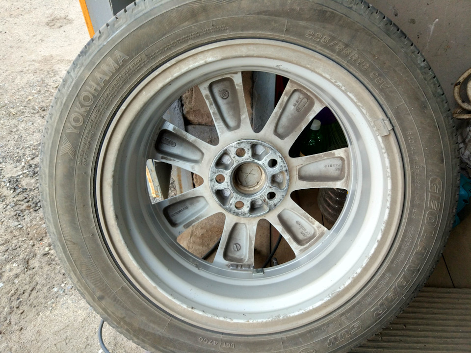 - Задомкратить колесо, разболтить и снять;