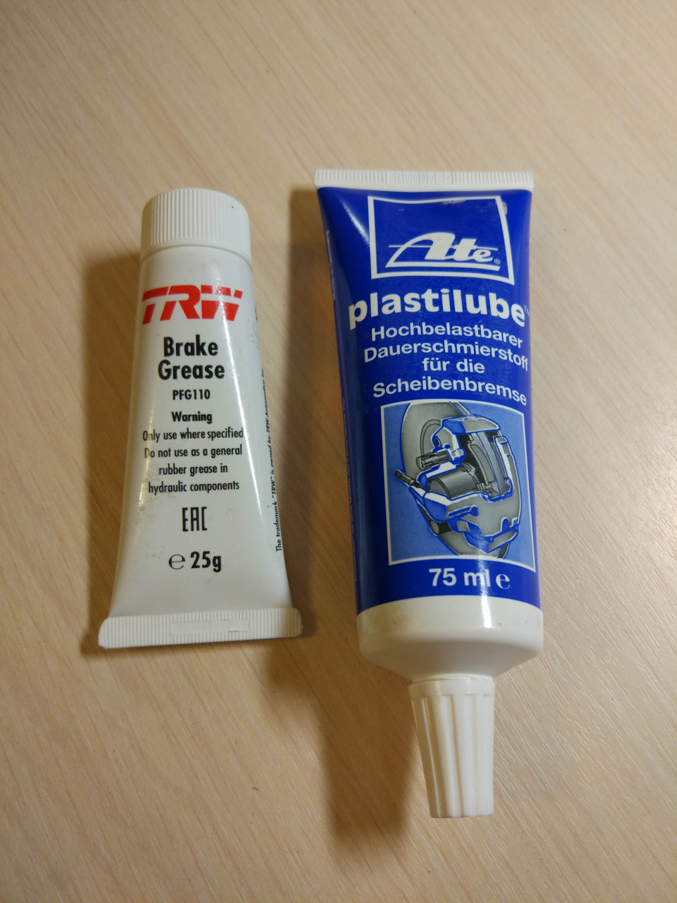 Plastilube-ом мазались привалочные поверхности диска и ступицы, наружние части колодок и противоскрипные пластины, направляющие пластины.