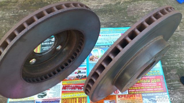 Купил на разборе, внешне не отличишь от родных. Состояние почти идеал, нашел, подготовил и обработал для себя, но оказалось что на Toyota Corolla Runx (правый руль) они не подходят (наружная рабочая (для колодки) поверхность диска затирает наружную скобу суппорта) — на родном диске размер D=52 мм (в нем и проблема — родной диск садится на ступицу глубже чем этот), Н (роли не играет и садится нормально)=131 мм