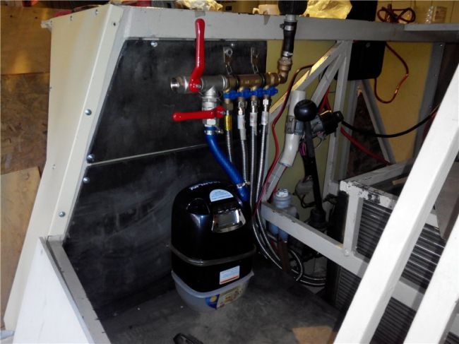 Установлен двигатель, радиатор системы охлаждения, рулевая колонка.