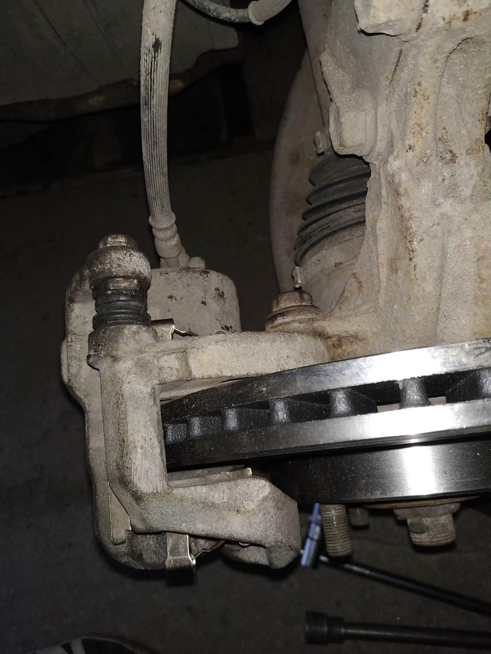 По установке все просто: 2 болта суппорта, 2 болта тормозного цилиндра + разжать отверткой колодки. И вуаля диск в руке. Начал с правой стороны.