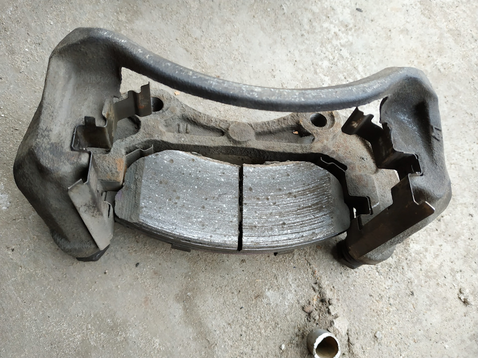 Обычно если колодки имеют достаточную подвижность в собранном виде усы их выбрасывают и пазов пока не опустить скобу. У вас вижу этого нет. Это может быть (но не обязательно) признаком того, что у колодок недостаточная подвижность и рано или поздно (скорее рано) они начнут подклинивать…
