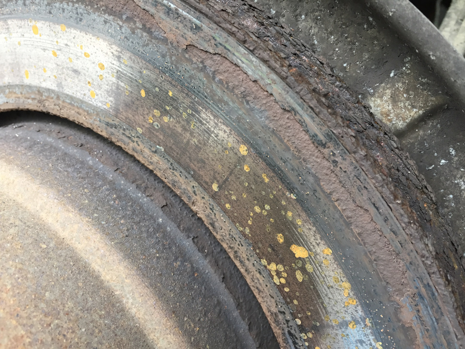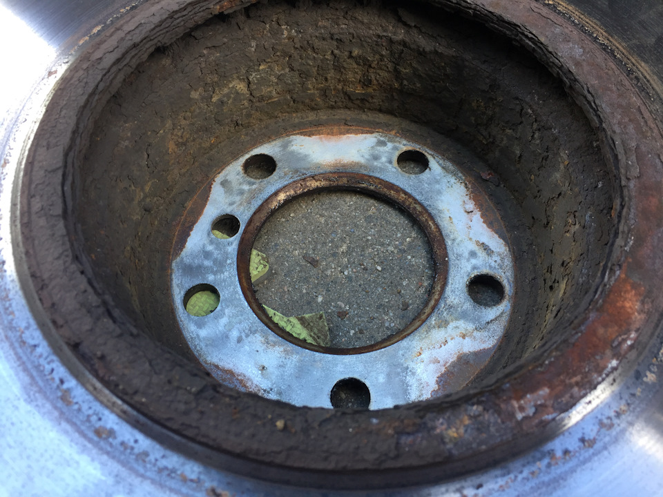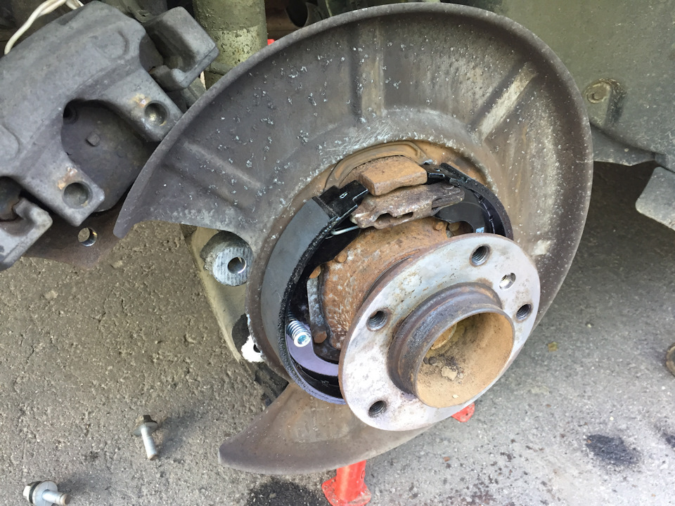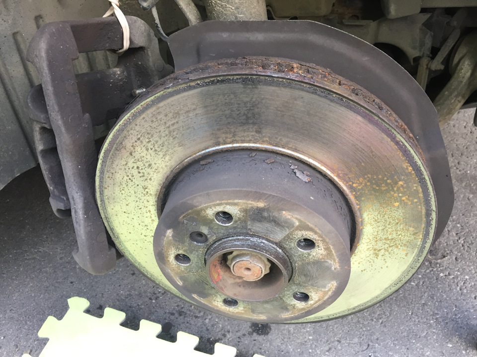 Следом пришел черед задних колес. Тут помимо обычных дисковых есть еще и барабанные колодки ручника, которые находятся внутри тормозного диска. По состоянию задних тормозных дисков я понял, что легкой замены не будет.