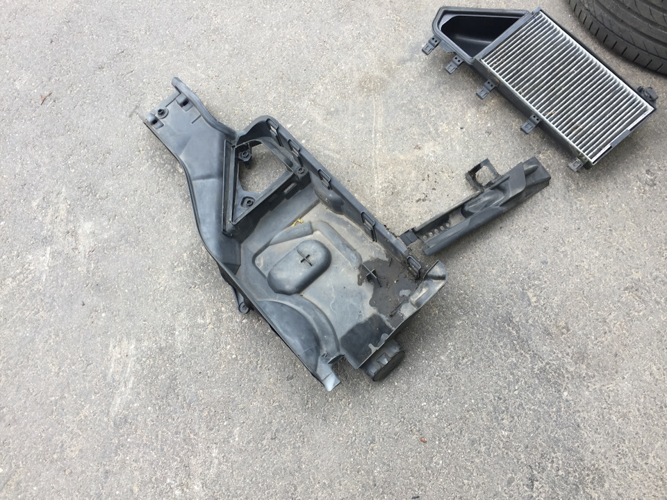 Итак, по инструкции сначала нужно получить доступ к бачку с тормозной жидкостью. Для этого снимаем воздушный фильтр с водительской стороны. Несколько пластиковых гаек и зажим крышки фильтра поддались легко.