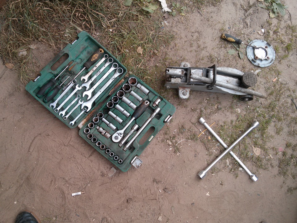 Конечно, все начинается с простого, снятия колеса. При этом, можно мысленно, про себя или если нет никого рядом, укрыть матом шиномонтаж, который затянул болты по самое не могу и конечно не смазав их.