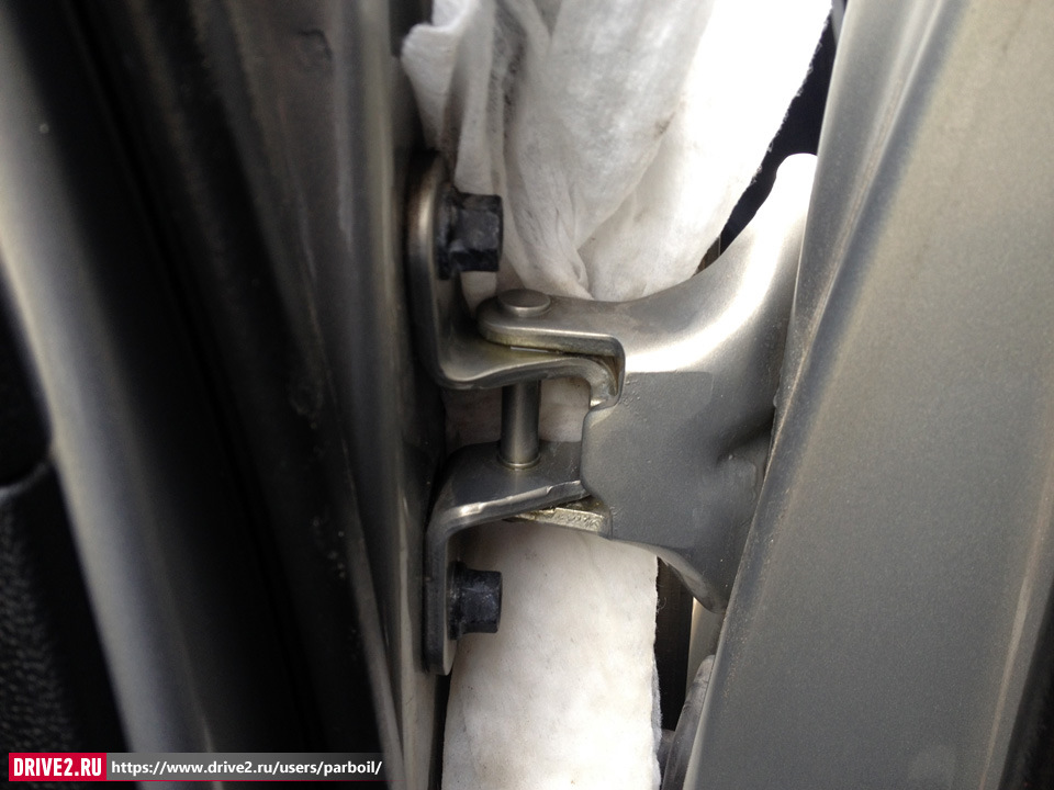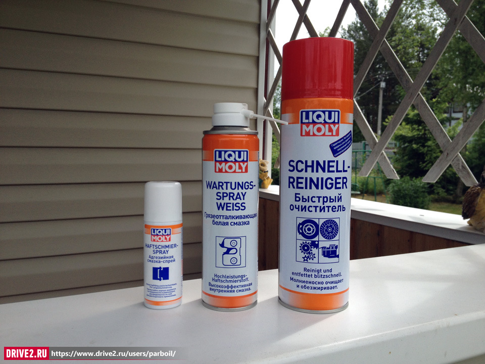 Для этого старая смазка была полностью удалена быстрым очистителем, после которого была использована новая для меня смазка — Haftschmier Spray от Liqui Moly. Ранее в петлях я использовал белую смазку Wartungs-Spray, но ее лучше использовать в замках и на ограничителях дверей. Почему? Проникающая способность у Haftschmier Spray получше, что для петель больше подходит.