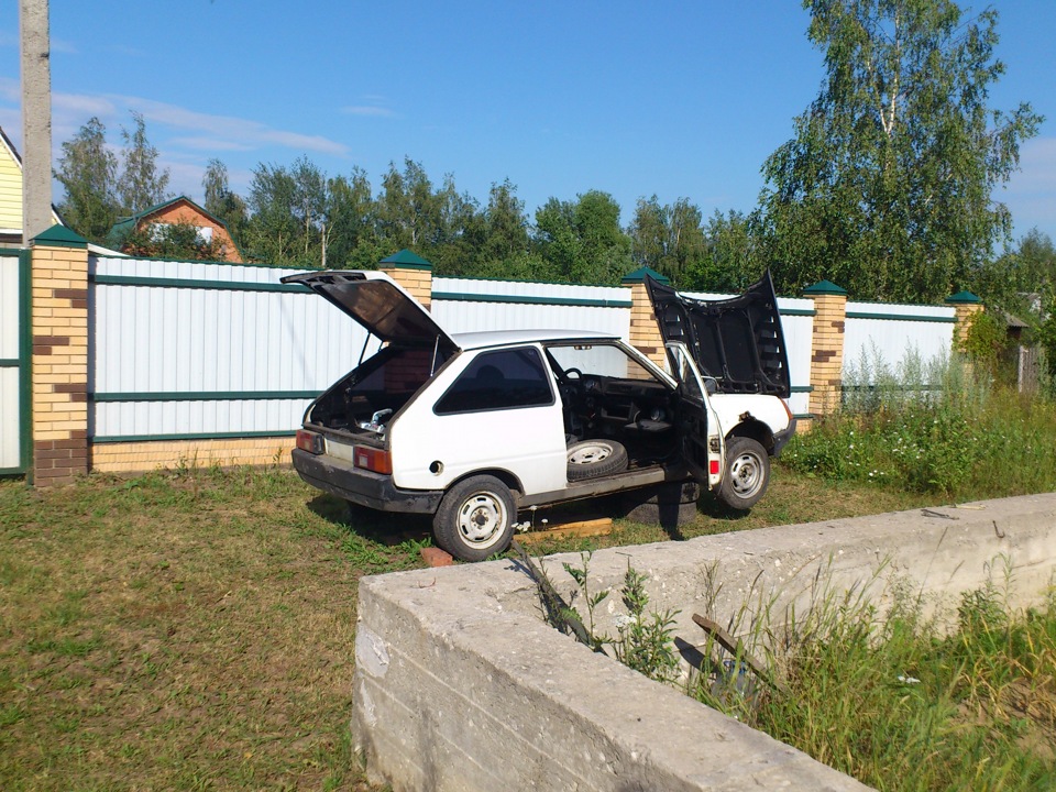 Под конец накинул колёса, пусть повисят. Думаю с виду лучше, не будут думать всякие пьяные гуляки что машина заброшена…ну…надеюсь=)