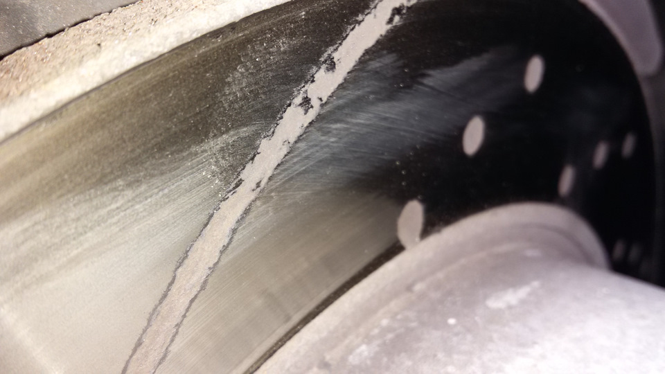 Предыдущие диски прослужили 3,5 года и проехали чуть больше 130 000 км. Износ легко определяется по состоянию проточек, как только они сравнялись с поверхностью — эффективность снижается и значит пора менять диски.
