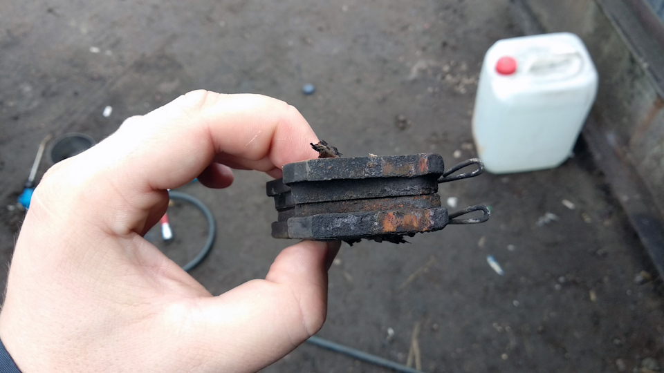 -снимаем старые колодки. Обращаем внимание, как плотно они сидят на направляющих.