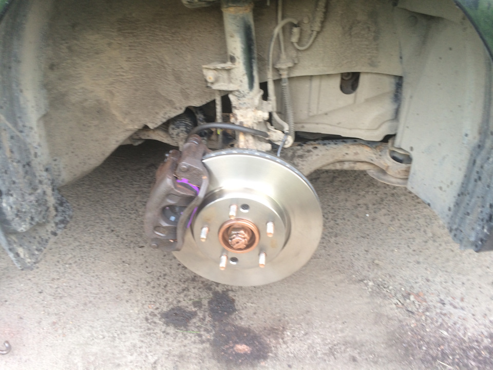 На пробеге 108 тыс. км. поменял передние тормозные диски — правый стал бить при торможении на скорости более 100 км/час.