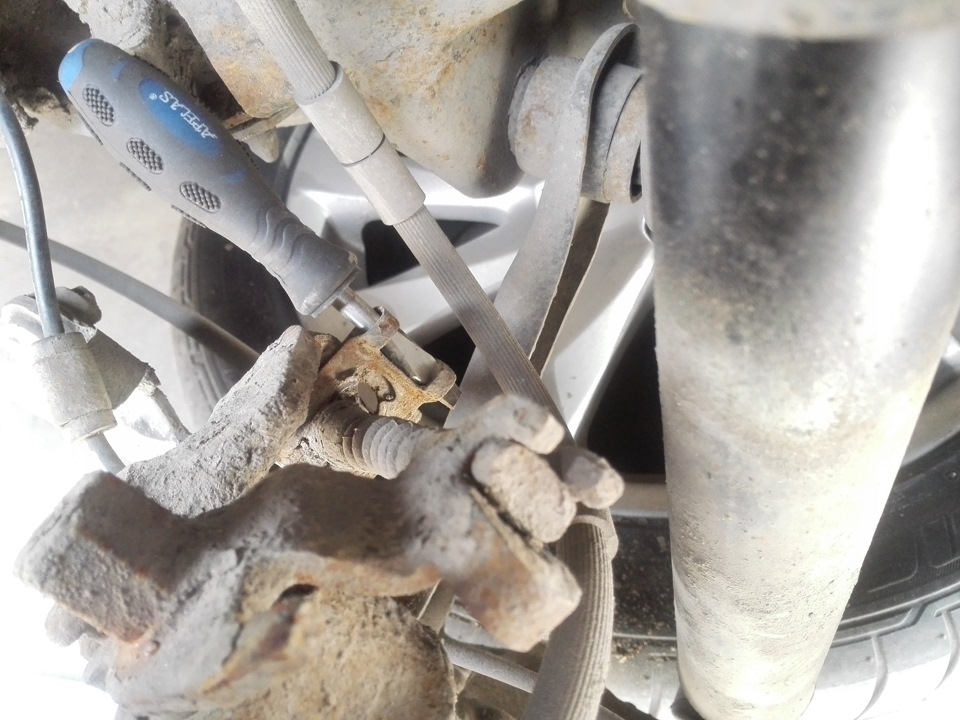 1) Открываем пробку тормозной жидкости (следим за уровнем после вдавливания поршня суппорта)