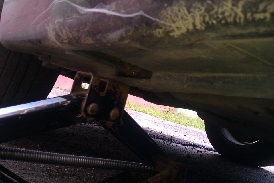 2. Подлезаем под машину и откручиваем ключом на 15 болты, которые держат суппорт и скобу. Болты рекомендую новые заказать. Подвешиваем где нибудь суппорт, чтоб не мешался.