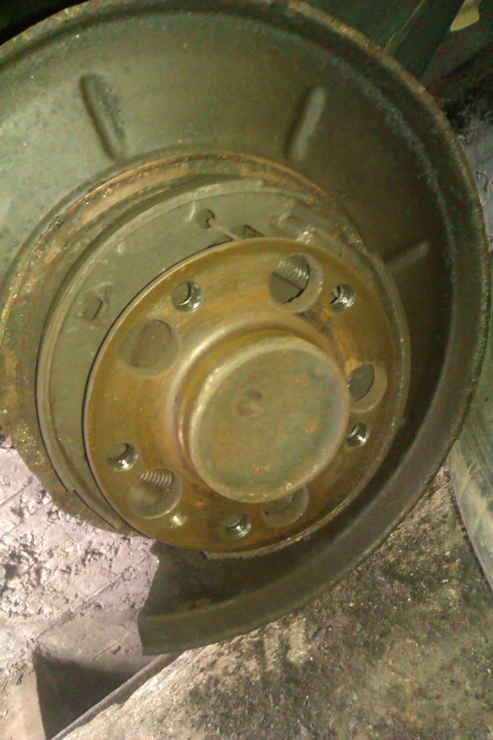 5. Сняв диск, отправляем его в помойку и видим чудесную картину колодок ручника. Если требуется, проводим работу по их замене.