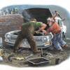 Процесс прост, но требует определенных навыков. Автомобиль поднимается на домкрате. После чего необходимо повернуть колесо в сторону от двигателя, снять его. Далее процедура подразумевает следующие манипуляции: