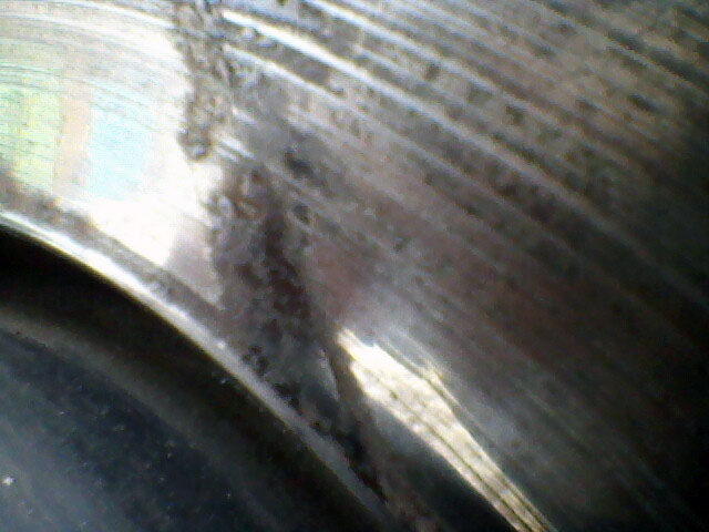На оригинале они плавно переходят на стенки, а в случае подделки, переборки имеют резкий переход. В связи с этим, прочность фальшивого диска намного хуже.