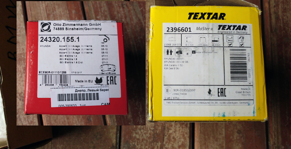 Колодки уже взял перед Textar (не китай!) зад Zimmermann (не нашел проверенных задних Textar).