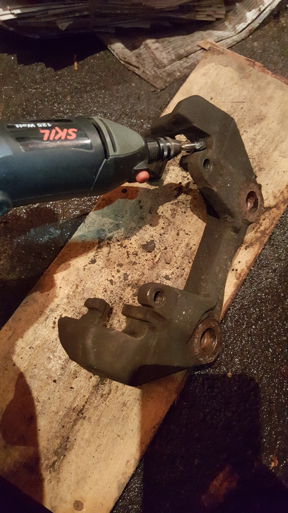 Далее чистим скобу бормашинкой.