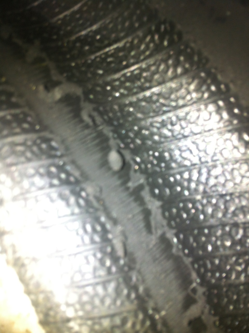 Подняли машину, сняли колесо, далее покрышку и увидели, что колесо просто-напросто умножено на ноль — Обод диска продавил под протектором небольшую канавку, а саморез разорвал на боковине резину до корда…