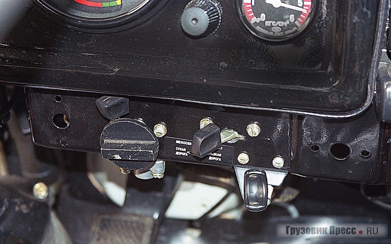 Весьма приятно отметить, что грузоподъемность трехосного полноприводного автомобиля составляет 11 т. И еще наша машина оборудована системой регулирования давления в шинах, причем оно в шинах всех осей равное. Благодаря этому исчезают неудобства, с которыми мы столкнулись, испытывая некоторые полноприводные двухосники (см № 62004 г.).