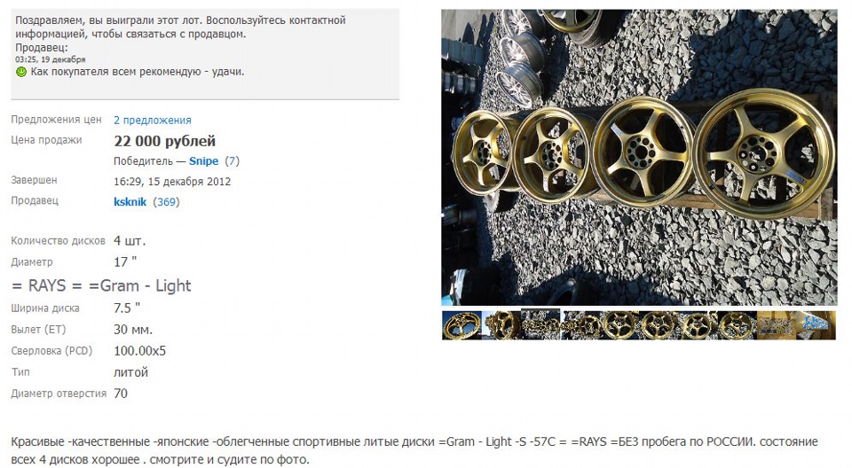 И вот в декабре лазая по барахолке на дроме нахожу объявление о продаже, с подходящими на селику параметрами, правда цвет не очень, но цвет это последнее на что смотришь когда попадаются диски которые уже долго не удаётся найти. Цена тоже немного завышена была, но у истинных селикаводов понты дороже денег)