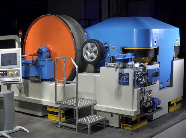 Большинство стендов (производит их компания ZF) представляют собой барабан диаметром около двух метров с металлической дорожкой, по которой, собственно говоря, «бегут» испытуемые шины, сбортированные на диск и накачанные до определенного давления. Барабан раскручивается до заданной скорости, а ось, на которую насажены диск с шиной, прижимает их к дорожке, имитируя различную нагрузку.