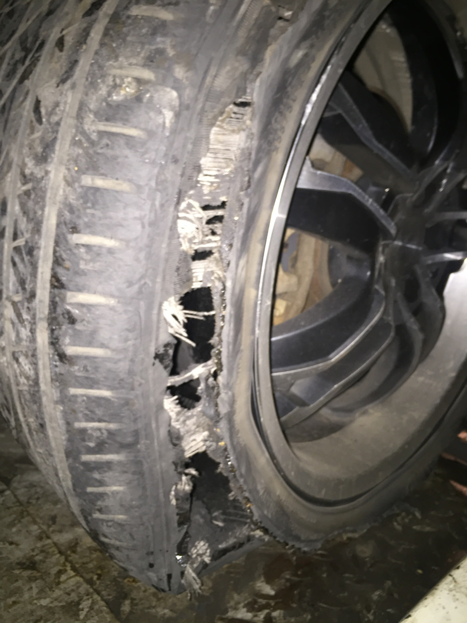 А спущенное переднее колесо даже не заметил и пока двигался дальше всю резину сжевало так, что она порвалась и задымилась.