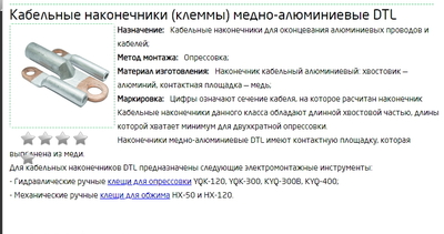 - Наиболее грамотным и профессиональным является монтаж с использованием биметаллических алюмомедных наконечников, контактная часть лопатки которых изготавливается из электротехнической меди, а хвостовик — из алюминия. Среди всех возможных модификаций алюмомедных наконечников наиболее надежными являются наконечники, изготовленные по технологии сварки трением