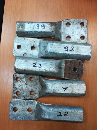 4) переходных деталей в виде медно-алюминиевых пластин по ГОСТ 19357-81, медно-алюминиевых наконечников по ГОСТ 9581-80 и аппаратных зажимов из плакированного алюминия по ТУ 34-13-11438-89;
